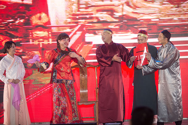 晚會由“聚合力 創(chuàng)奇跡”、“共生長 守初心”、“向未來 啟新程”三大篇章構(gòu)成,歌曲、舞蹈、魔術(shù)、小品、時裝走秀等各類節(jié)目俱全,精彩絕倫,高潮迭起,多才多藝的泰盛恒人,用自己的智慧和協(xié)作,為大家奉獻了一場多姿多彩的視覺盛宴。穿插其間的五輪抽獎活動,及《瘋狂數(shù)鈔票》、《步步高升》等游戲互動環(huán)節(jié),更將整個聯(lián)歡會現(xiàn)場氣氛不斷推向高潮,掌聲、歡呼聲、笑聲沸騰了整個會場。伴隨著一個又一個節(jié)目的精彩演出,晚會在大合唱《攜手同行》的美妙歌聲中圓滿落幕。